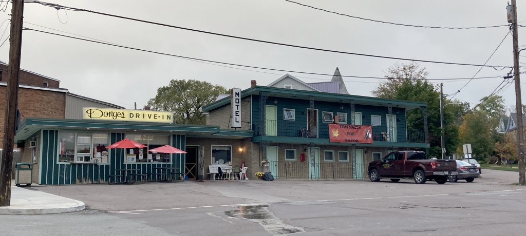 Rob took a look at the menu and said, “Look at these prices.” A hamburger cost $6.95. We both ordered hamburgers, not my favorite meal, but they were terrific. And, since business was slow, we learned a lot about Alicia, our server who is also the manager, She grew up in the town, her family has been in the town for many generations and she listed all the places in town that have her family name. But she’s traveled all over the world because her father died from brain cancer in his fifties and never got to enjoy his retirement so she’s not going to let that happen to her.