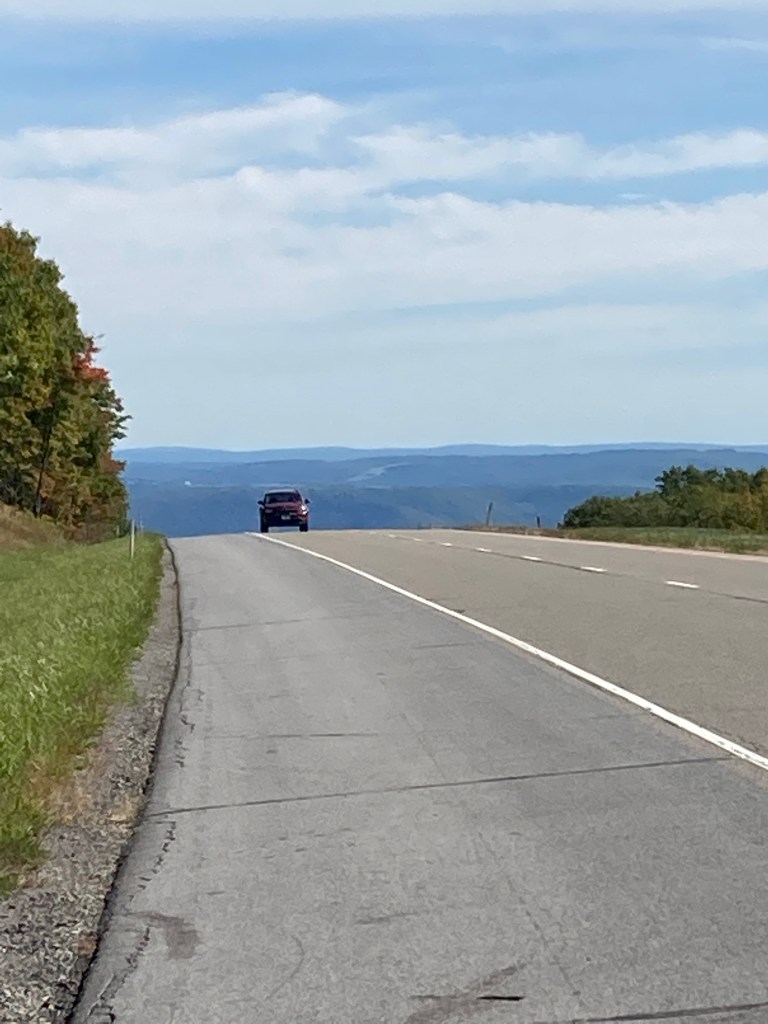 We both agreed that the scenery wasn’t all that remarkable, nowhere near as lovely as yesterday, although we are seeing more changing leaves.