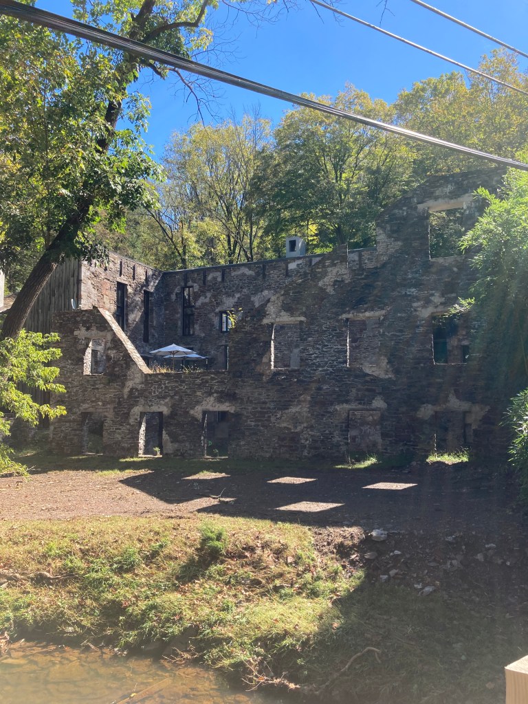 Shortly before arriving in New Hope we came upon this ruin. It looked abandoned until we came around the other side and saw a couple things that made it appear that the old mill was still used as a gathering place. See the umbrella in the back?