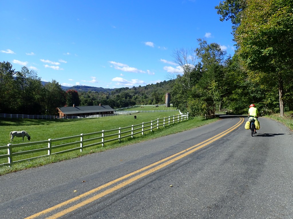 Even so, after a while, I found myself ready to be done. It was peaceful and beautiful but maybe too much of the same thing for too many miles. I thought about the upcoming Allegheny Gap, which we will be on for many more than 40 miles, and hoped that it will be more interesting. I look forward to riding through towns, seeing what each has to offer: a lovely park? a coffee shop? or nothing but a few houses and maybe a church?