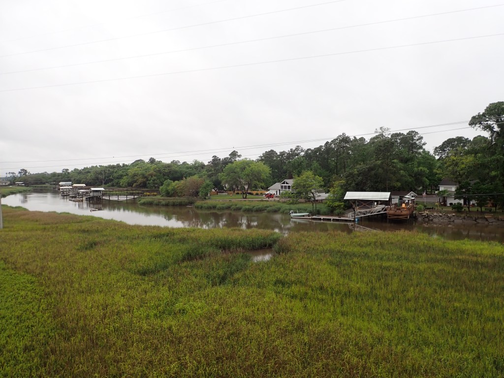 We got on the road shortly after 11 o’clock, the first day it was cool enough to wear a windbreaker, and the first day we had significant wind. Riding the causeway was pleasant. In Brunswick we picked up the state highway 17 again and were on it for about 18 miles. That was not so much fun, lots of traffic and not a great shoulder.