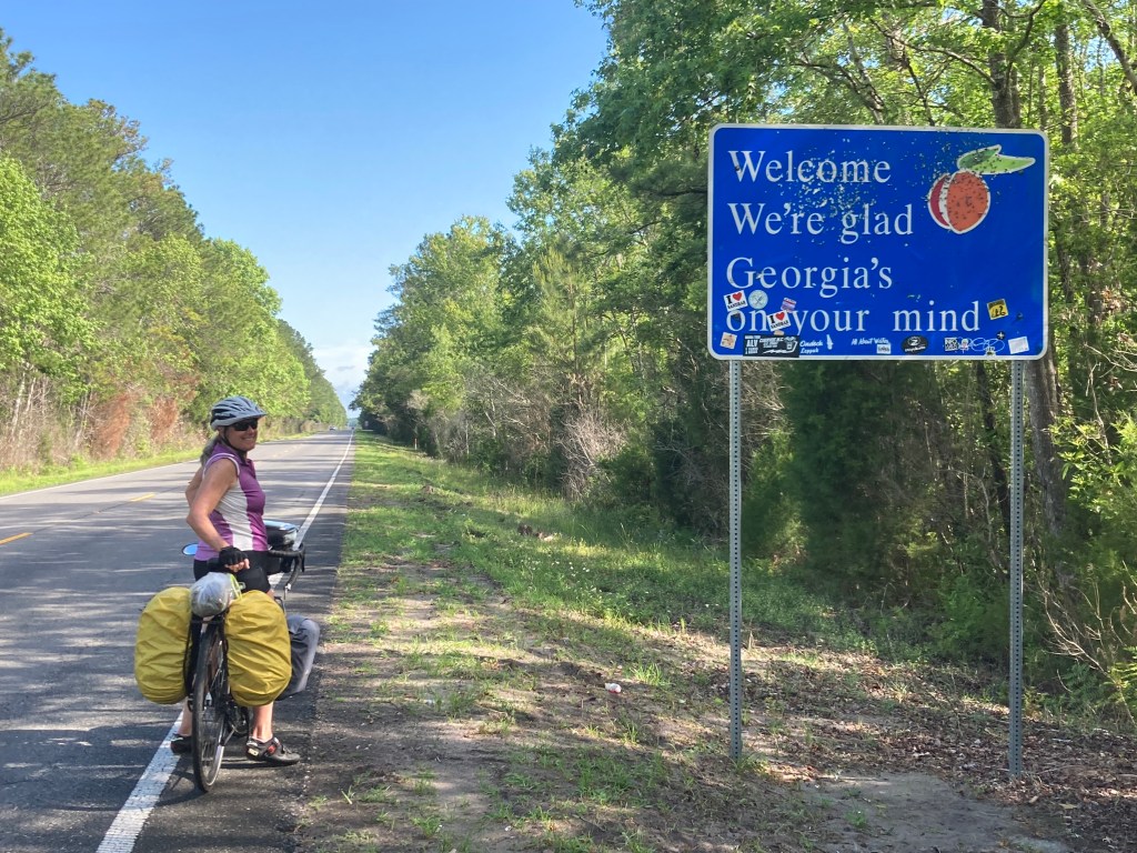 I can’t recommend riding in Georgia. While Florida has a plethora of paved beautiful bikeing trails and wide smooth shoulders on its highways with well-marked bike lanes, Georgia has none of that. When we had to ride on a highway, which was often, we were relegated to a small bit of shoulder with a rumble strip directlty to our left. The only nod to cyclists were signs before bridges telling motorists to share the road.