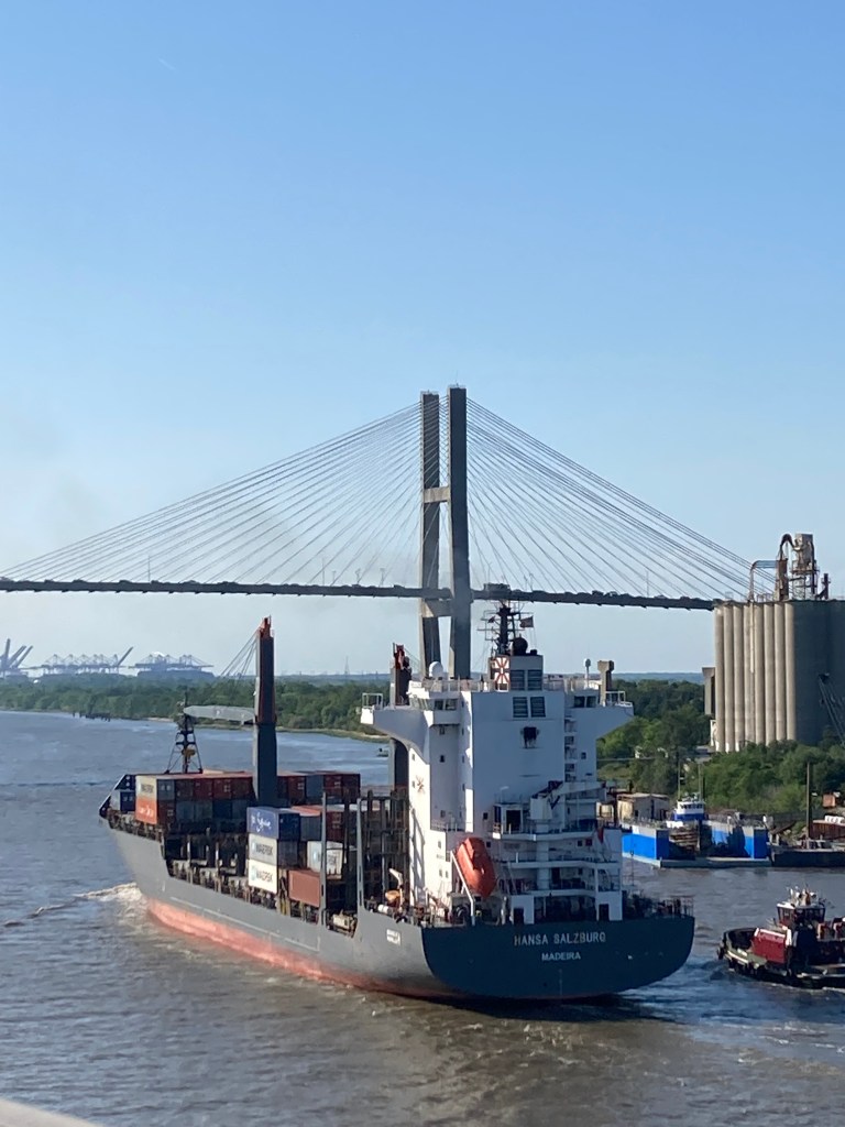 We left Savannah around 2:30 for a 30-mile ride to Bluffton. Along the way we passed mountains of cargo containers and rode through the Savannah National Wildlife Refuge into South Carolina. Gary, our Warm Showers host, escorted us the last five miles to his house. We enjoyed a vegetarian dinner and an evening of sharing stoies of cycling adventures with him and his wife, Lois.