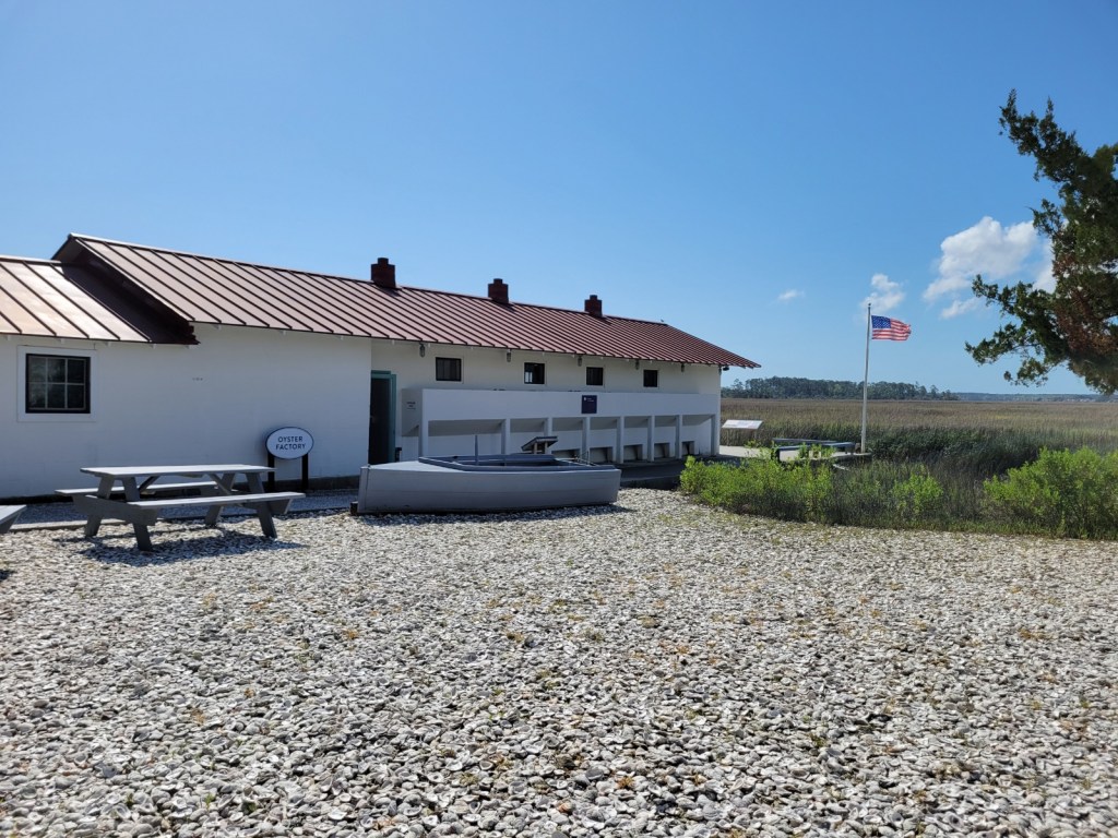 Saturday our plan was to play tourist for a while in Savannah before cycling about 30 miles to a Warm Showers host in Bluffton. It worked out very well. Cousin Paul agreed to drive us and our bikes the 15 miles into downtown Savannah and he was also interested in stopping off at the PinPoint Heritage Museum along the way. The land where the PinPoint community sits was purchassd in the 1890s by freedmen, of the Gullah/Geechee community of former enslaved people from what is now Angola. They were able to buy land in the salt marshes that was considered undesirable by whites. Supreme Court Justice Clarence Thomas is from PinPoint. The museum sits on the site of the former oyster and crab factory which provided a meager living for the people of the community. Today PinPoint is the only remaining Black-owned community along the southeastern coast.