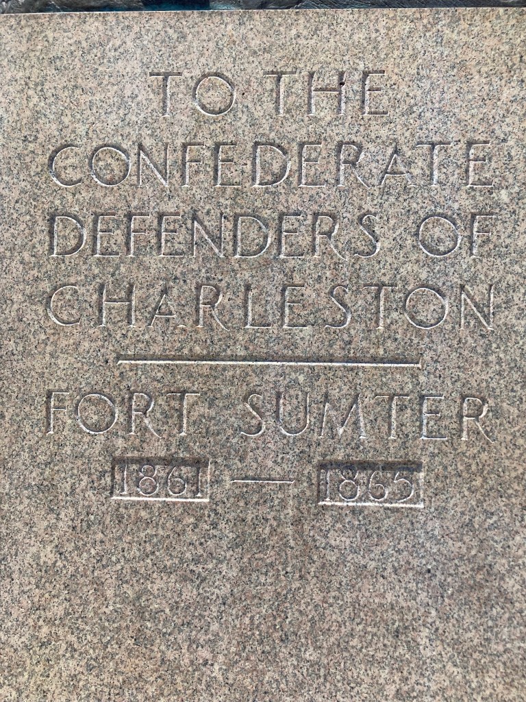 We saw a lot of horse and carriage tours in progress. I asked the fellow working at the Slave Market if they talked about the role that African Americans played in building the homes and economy of Charleston. He said no. I told Rob going on one of those tours would only make me angry so we opted to spend the rest of our time wandering the city streets, gaping at the beautiful homes, reading historical signs, and checking out monuments.