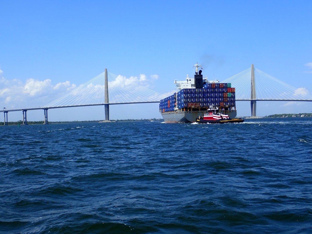 While we were eating breakfast Rob came across mention of a water taxi that would take us to Mt. Pleasant, where we had a Warm Showers host ready to put us up for the night. Skipping the adventure of riding over a bridge was not a hard decision to make.