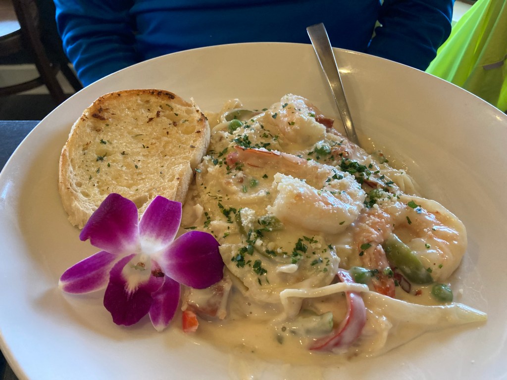 Rob had seafood fettucine.,
