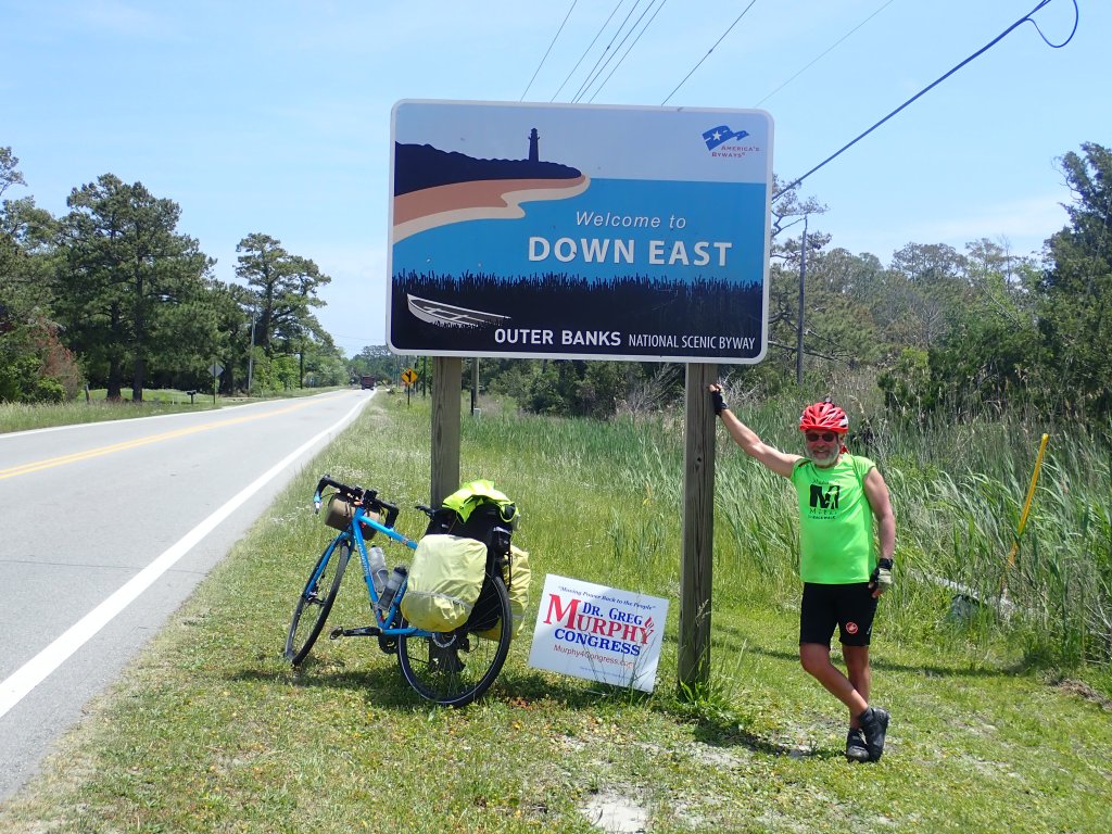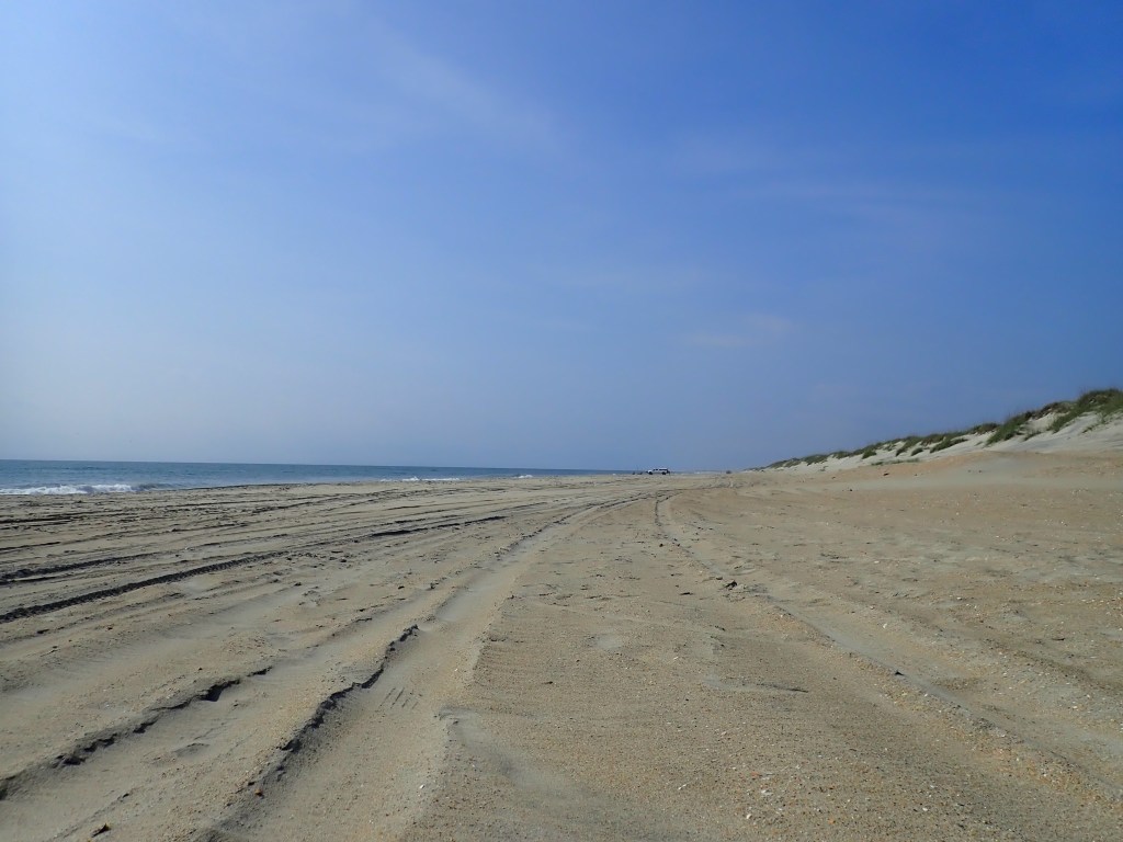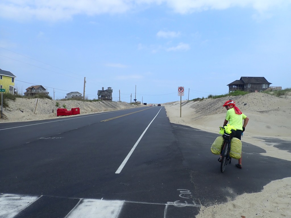 Friday was terrific. Starting out at 8:00 am, we had another day of riding where we fairly flew, covering 60 miles by 2:30. That included a morning stop for a snack on the beach and a lunch stop at a national park campground. We pretty much spent the day riding through the Cape Hatteras National Seashore Recreation Area., a long narrow windblown island. Happily the wind was in our favor.