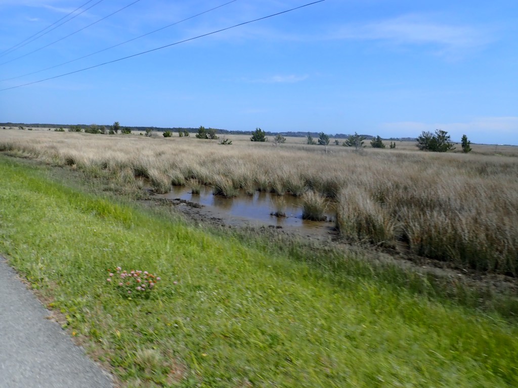 Leaving the town of Cedar Island. The community appeared to be an interesting collage of new well-maintained houses and rundown shanties, all scattered about.