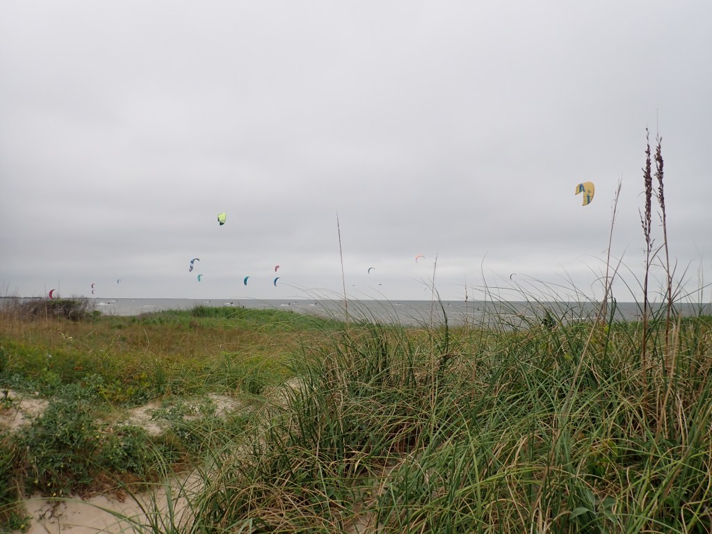The wind was rough for us but plenty of fun for all the kite sailors. We saw one doing flips in the air. This was the bay side of Hatteras Island.