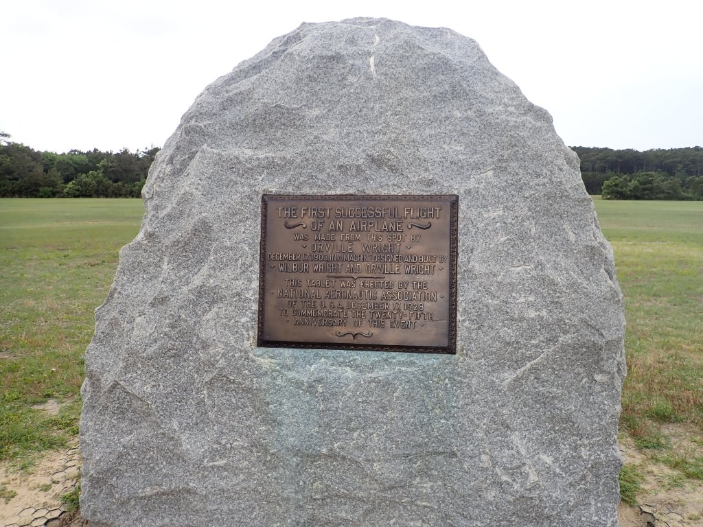 This monument sits on the spot where Orville made the first successful flight on December 17, 1903. The brothers drew straws to see who would go first. Wilbur won, but crashed in his attempt so Orville got the next try, and made it.