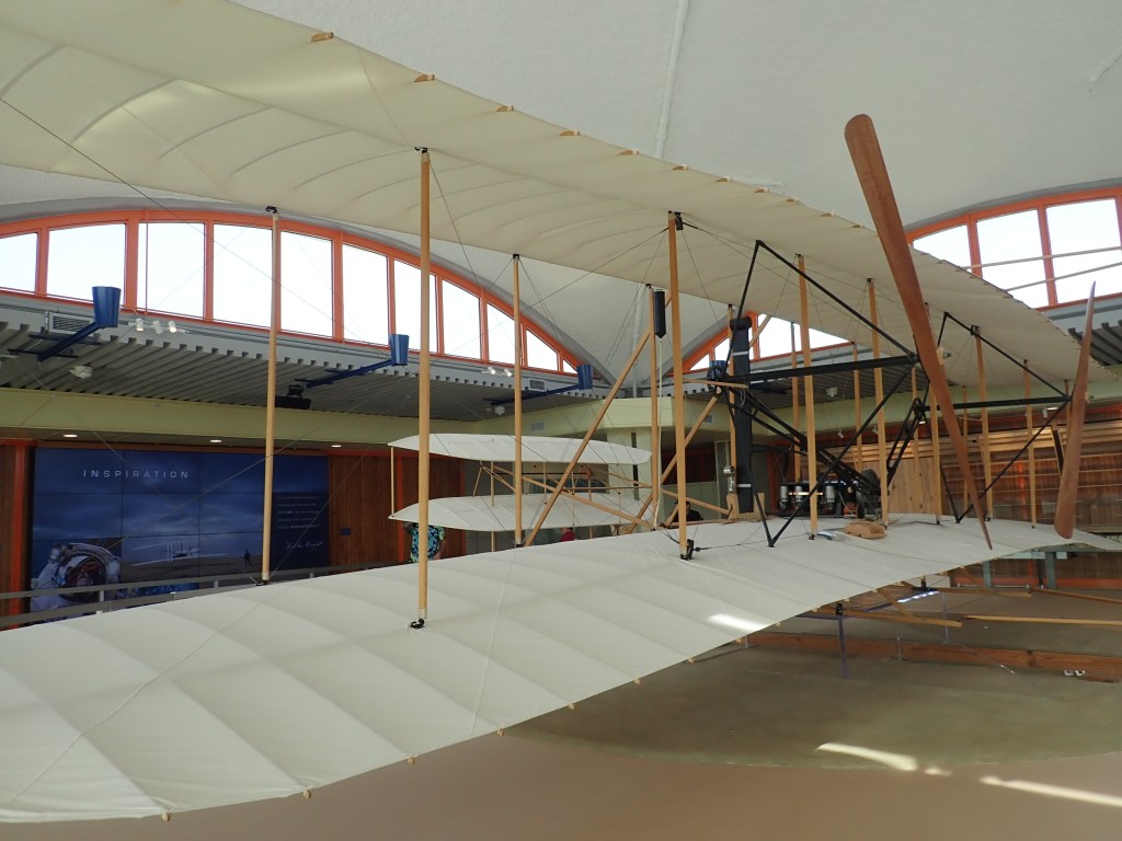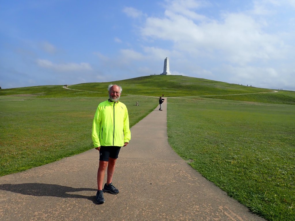 We were happy to get in our miles quickly because that allowed us to spend a couple hours at the Wright Brothers National Memorial in Kill Devil Hills. I was curious as to why the memorial is located in the town of Kill Devil Hills when everyone knows the first flight took place in Kitty Hawk. It turns out that what used to be Kitty Hawk in 1903 when the first flight took place is now in the town of Kill Devil Hills.