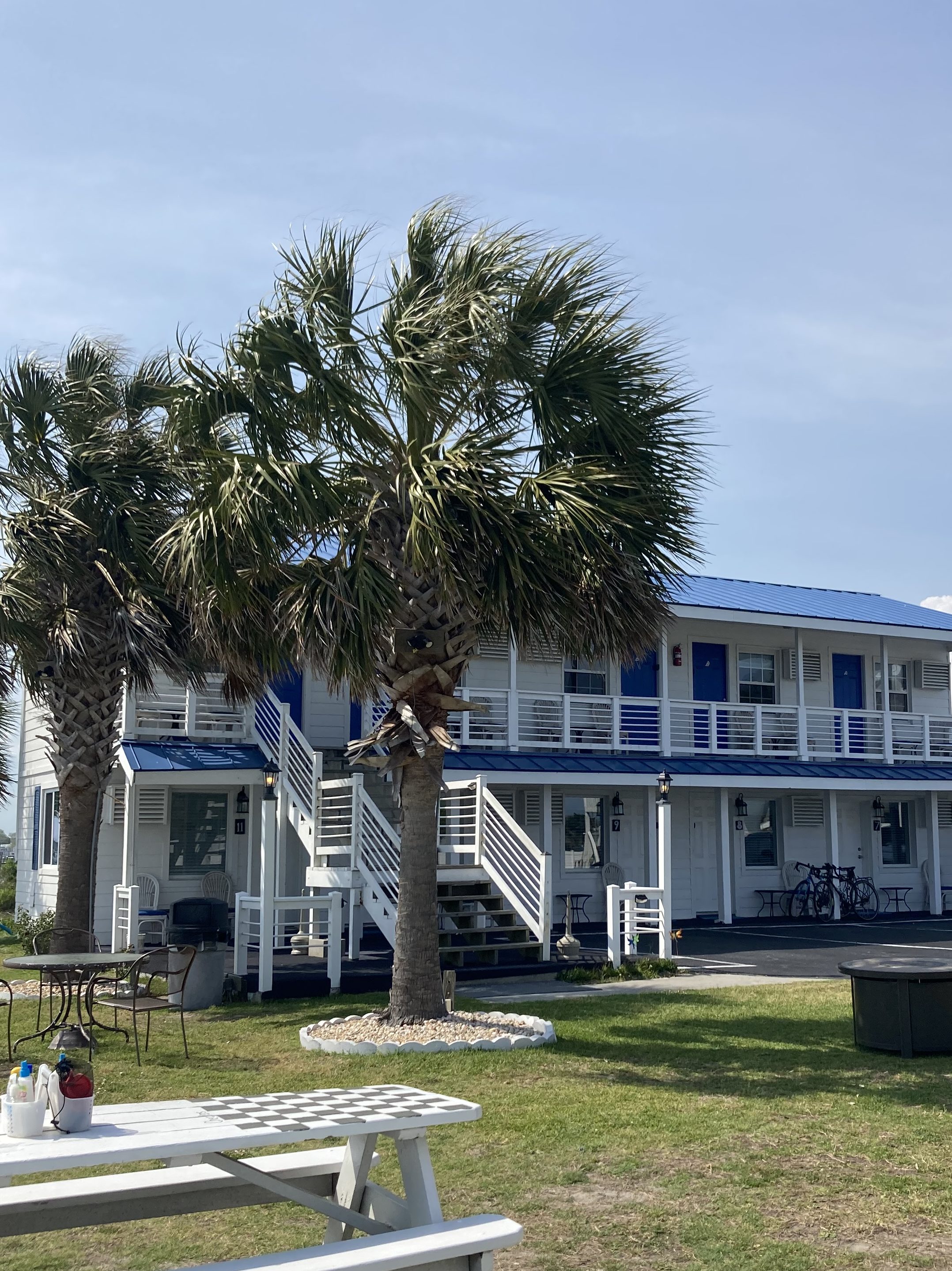 After riding 61 miles we arrived in Southport around five o’clock where we had a room reserved at the Inn at River Oaks, a sweet little local motor lodge.