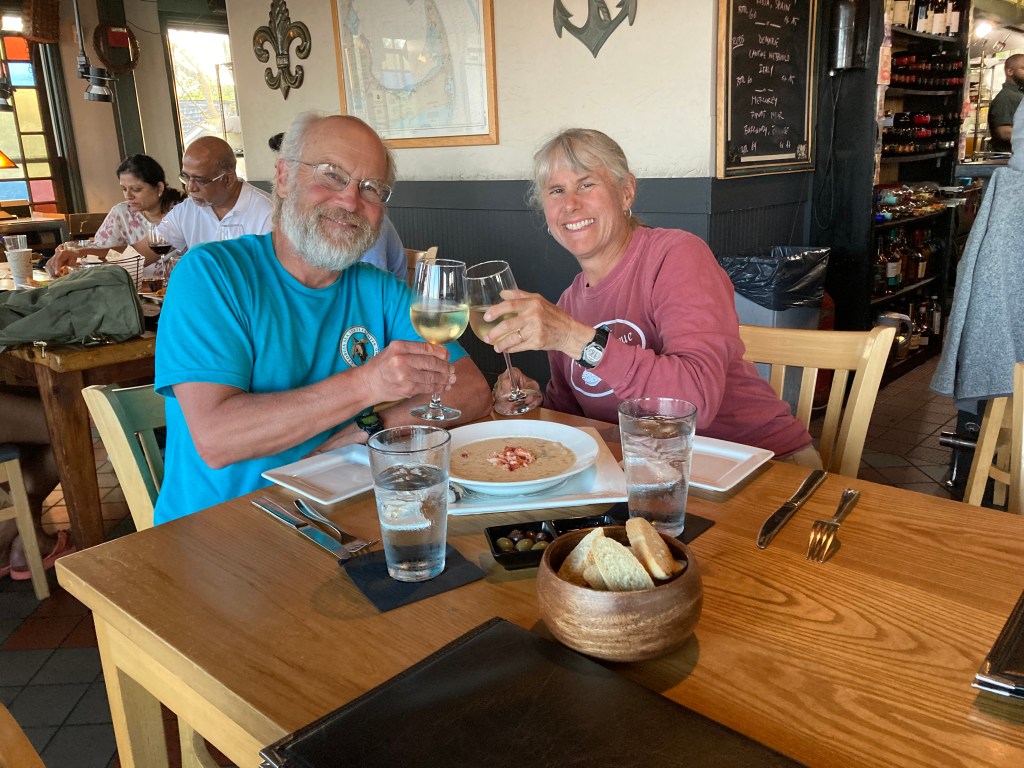 In looking back on this section of our ride around the perimeter of the United States, we agreed that, while we were glad we did it, we couldn’t recommend it. I asked Rob if he remembered any days where the landscape we’d ridden through was at all memorable. He said no, and I agreed. Unlike the West Coast, or Montana, or Arizona, there was no eye candy on this trip. We visited historical places in the south, we sampled new dishes, we stayed in some lovely reasonably priced locally-owned hotels and inns. And we had fun visits with family, friends, and Warm Showers hosts.