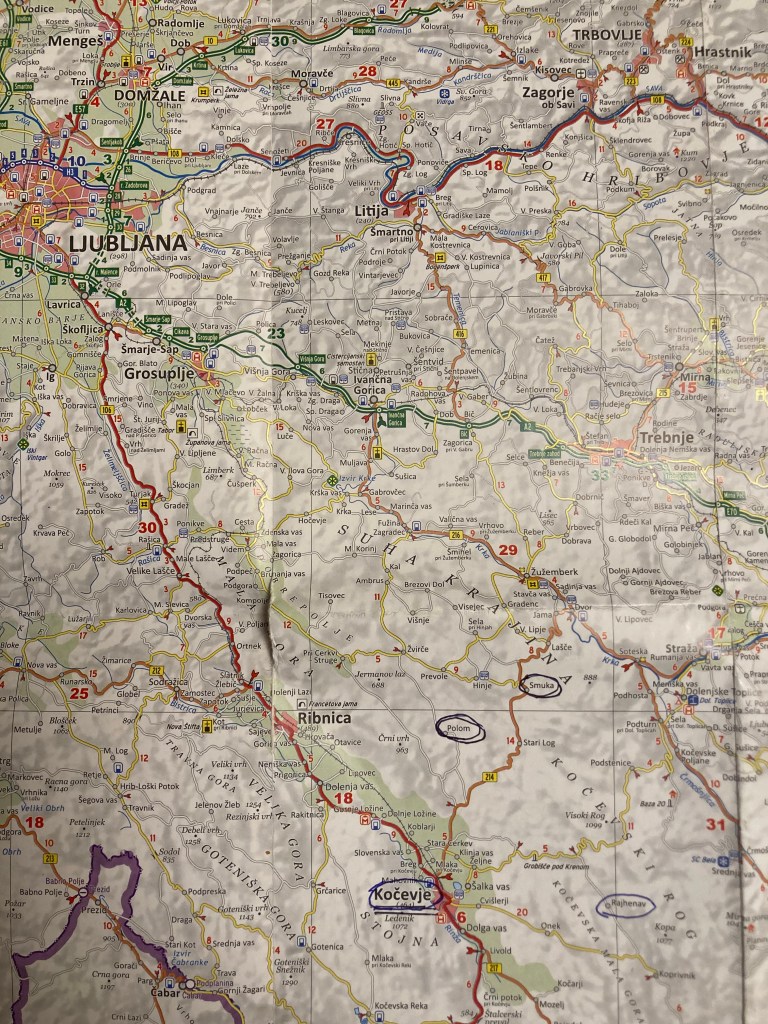 Kocevje did not strike us as an especially remarkable city. It contains a mix of new and old buildings and, while we obtained a written guide to the historical buildings, we found it to be incredibly difficult to follow the way the map was laid out. But we hit the jackpot with our accommodations. We stayed at the Guesthouse Veronika and found Klemen, the proprietor, to be a wealth of information. He told us that his mother’s family, of Slovenian descent, has been in Kocevje for generations. He is well-versed in Gottschee history. He told us that after WWII the Gottscheers couldn’t come back even if they wanted to. Once the villages were destroyed, the plots for the houses were eradicated so that anyone wanting to return couldn’t even purchase their old land. The Slovenians didn’t want the Germans to come back. I got the impression that, after the death of Tito and the breakup of Yugoslavia, there was more interest in preserving the Gottscheer history.